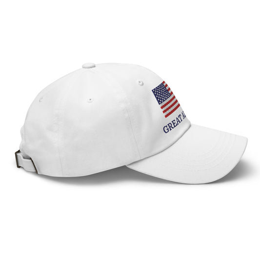 "GREAT ALREADY" White Cap with American Flag